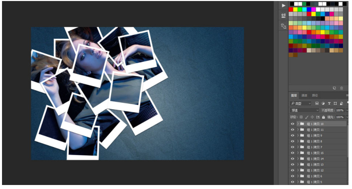 6、接下来我们要做的就是机械的复制N多个上一步我们选择的编组,然后让其错落有致的摆放,也可以按CTRL+T自由变换改变角度。