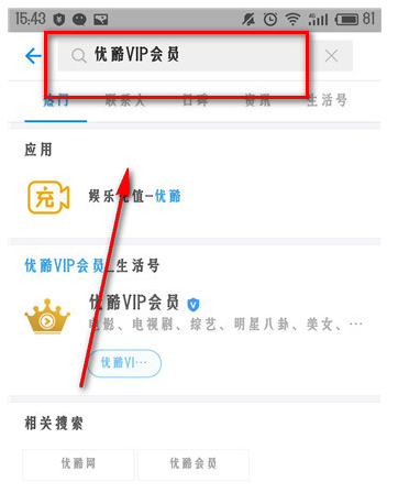 没有的可以点击上方搜索栏,输入优酷VIP会员,