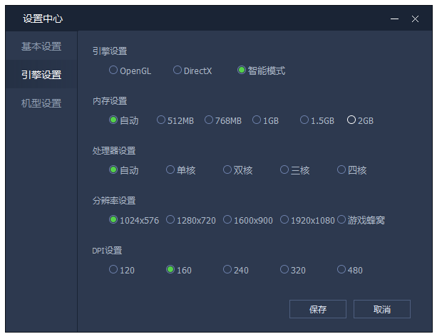 2、接着在“设置中心”的“引擎设置”中就可以看到腾讯手游助手的性能设置了,在这里我们可以根据自己电脑配置的情况来适当调整腾讯手游助手的性能即可。