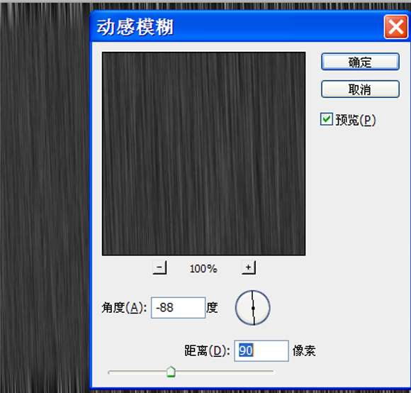 3、执行滤镜-模糊-动感模糊命令,在弹出的对话框中设置角度为-88,距离为90点击确定按钮。