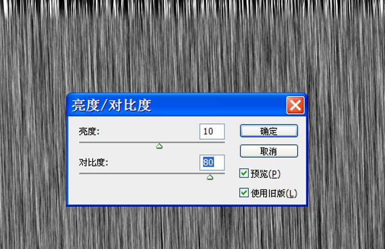 4、执行图像-调整-亮度对比度命令,在弹出的对话框中设置亮度为10,对比度为80,点击确定按钮。