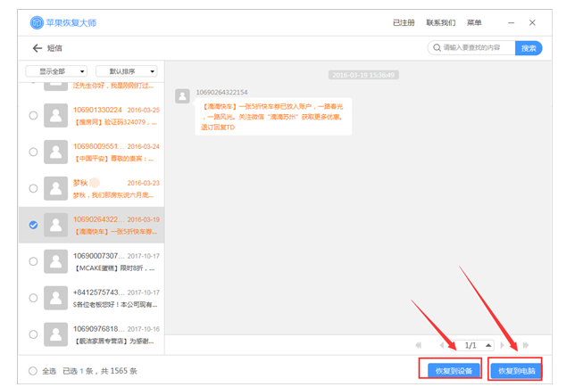 如果想要将恢复的短信导出到电脑上进行保存,我们还可以直接点击“恢复到电脑”按钮。