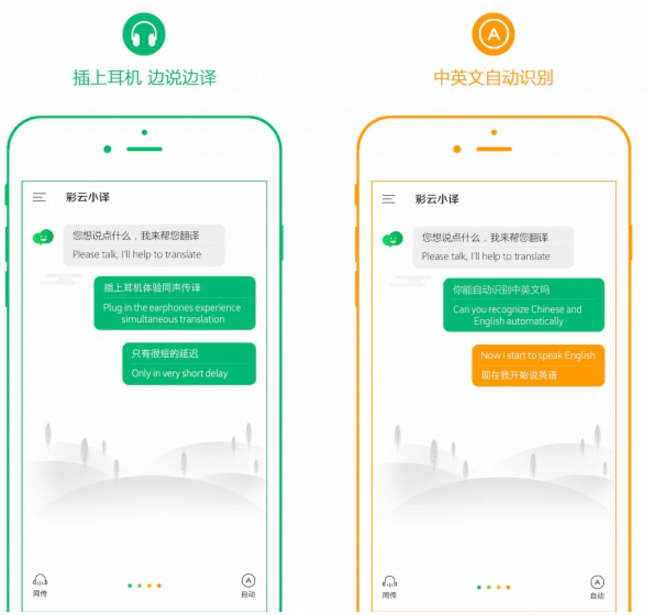在简洁的界面里,自由切换「同传」和「交传」模式,右下角切换识别语言(中文、英文、自动),中部切换语音和文字输入模式。彩云小译逐字翻译的精准度高,足够应付四六级所需要的词汇量了。
