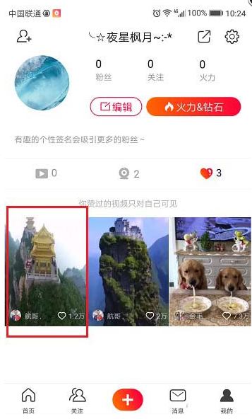 6、返回个人中心界面,可以看到刚刚点赞的视频已经被记录下来了,如下图所示: