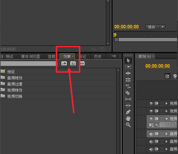 2、然后,在左下角的项目面板找到“效果”这个选项,如图所示。