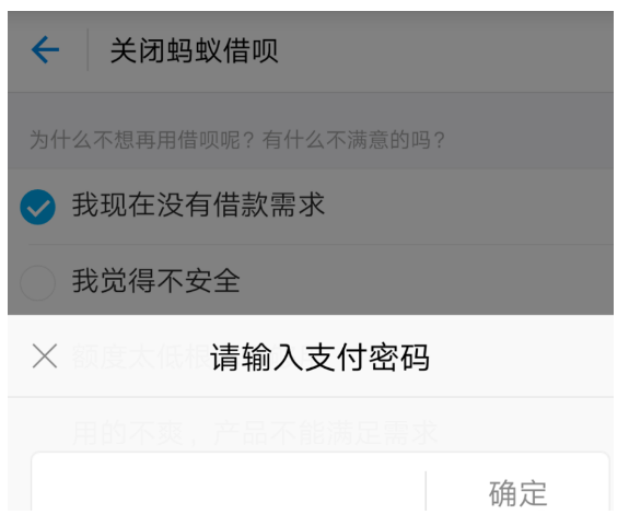 6、输入密码,验证完身份后,成功关闭借呗。