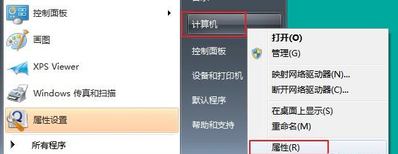 右击菜单栏上的“计算机”选项,在展开项中单机选择“属性”,