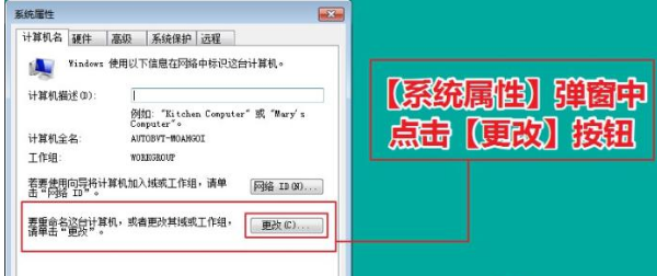 “系统属性”弹窗中再次点击“更改”按钮,如下图,