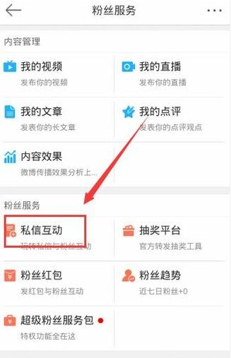 3、点击粉丝服务”中的“私信互动”选项,如图。