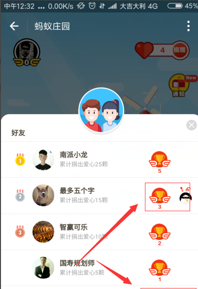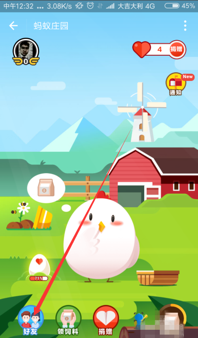 3、好友列表后带有这个小鸡的图标,说明他的庄园有其他好友的小鸡在偷吃,点击一下头像就可以调转到这个好友的庄园。
