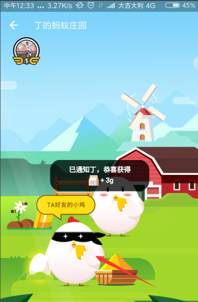 5、通知好友后,我们还可以获得养鸡的饲料,何乐而不为。