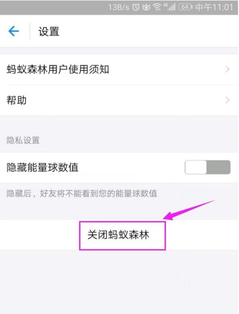 5、来到了设置界面,我们点击“关闭蚂蚁森林”,如图所示。