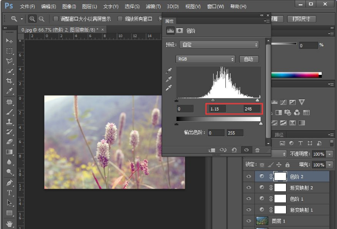 7、还没有出现我们想要的样子,发现图片有点偏暗。我们可以再新建一个【色阶】调整图层,并设置如下参数:
