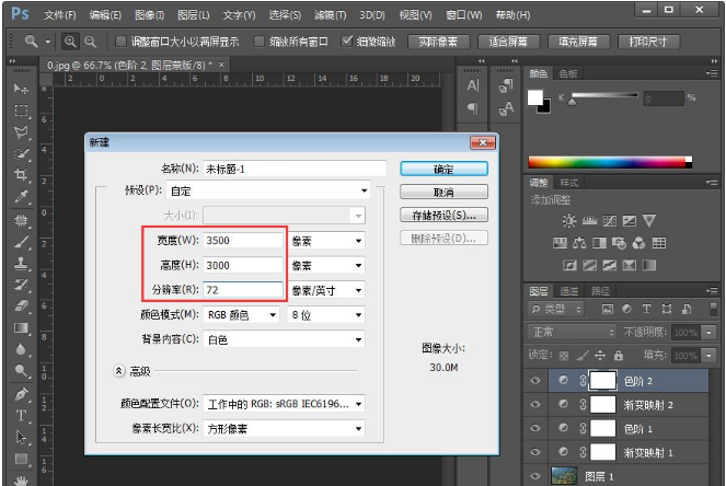 8、调节的差不多了,接下来我们进行稍微的点缀一下吧,新建一个比原图大很多的文档,数值自定。