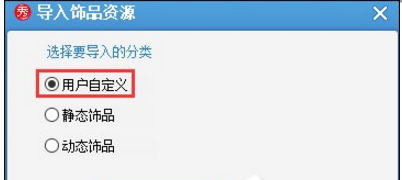 3、在打开的”导入饰品“窗口中,选择”用户自定义“按钮,然后点击”导入“按钮。