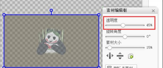 5、此时就会自动弹出一个”图片编辑框“,通过调整其中的”透明度“滑块,就可改变图片的透明度。