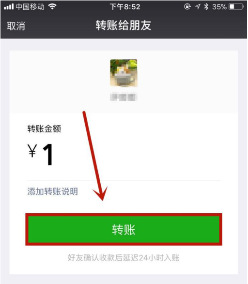 4、接着输入你的转账金额(当然是越小越好,本文以1元为例),如下图所示。