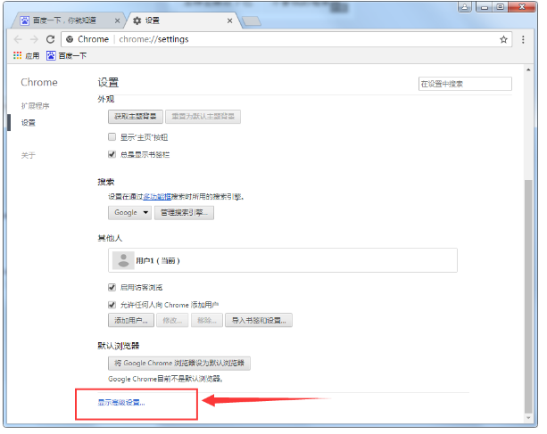 2、接着在设置界面的底部找到“显示高级设置”并打开;