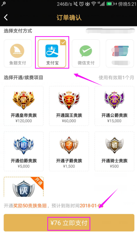 支付完成后,我们就开通了斗鱼贵族系统了。