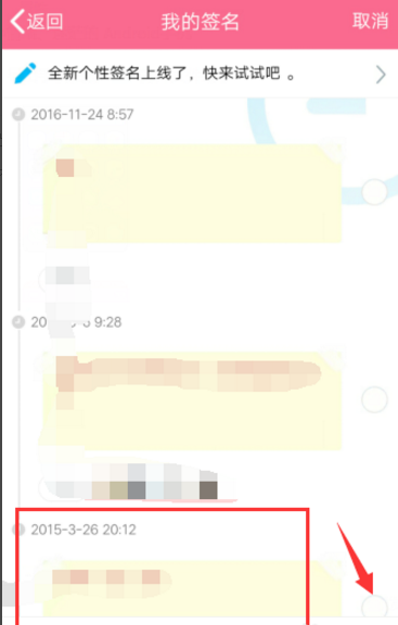 5、选择“删除”之后,这条历史签名就已经删除了。这时候我们再回到所有签名的页面,已经看不到2015-3-26 20:12的签名了,说明成功删除了。