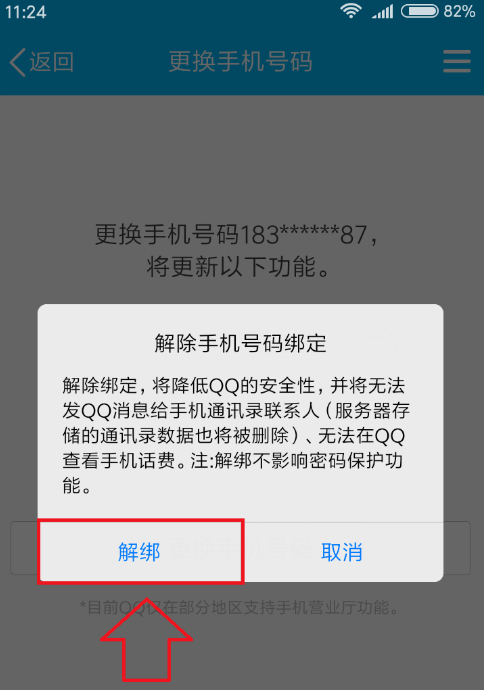6、仔细阅读完说明之后,确认解绑就行了!如果需要更换绑定手机号,只需在第4步,选择更换手机号。