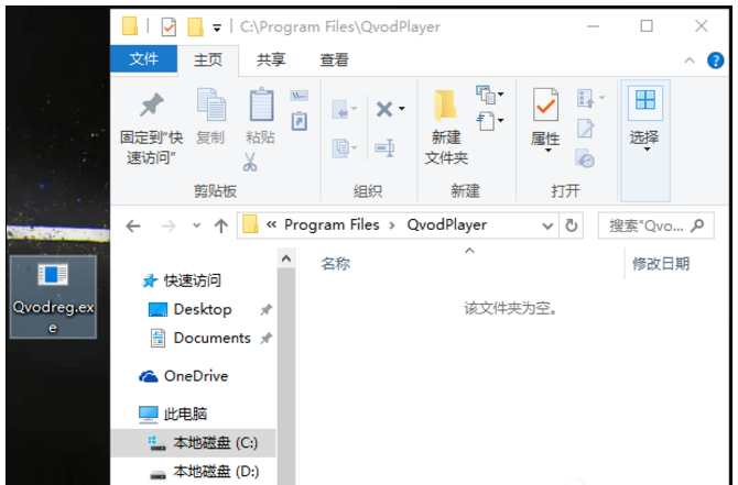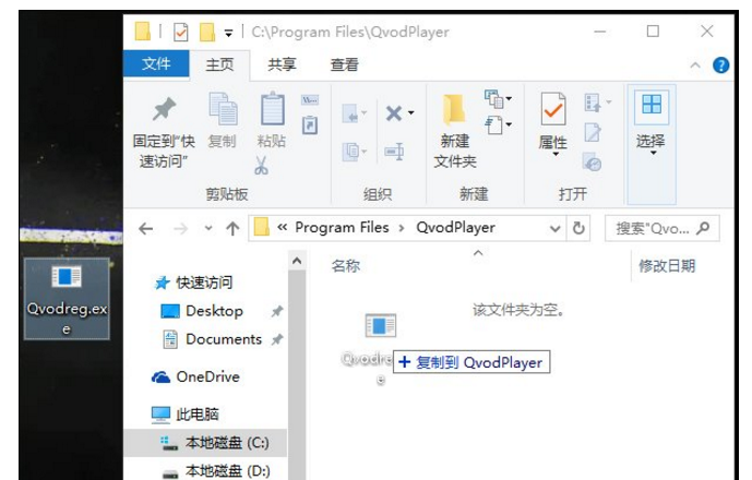 1、首先我们按照“不能打开要写入的文件” 框中的文件路劲,依次打开,比如:C:\\Program Files\\QvodPlayer\\Qvodreg.exe ,我们打开此电脑,依次展开C:\\Program Files\\QvodPlayer\\文件夹;
