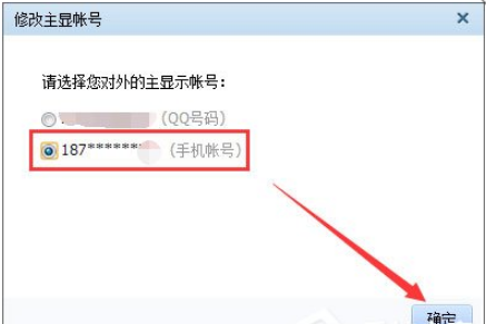 3、我们将对外的主显示账号设置为“手机账号”,然后点击“确定”。(没绑定手机的要先进行绑定)