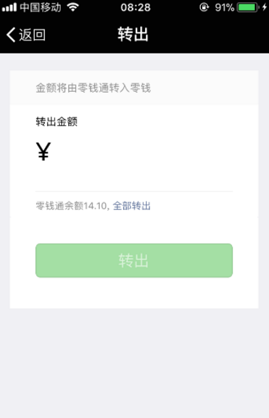 接着在“转出”页面输入需要转出的金额,然后点击转出按键。