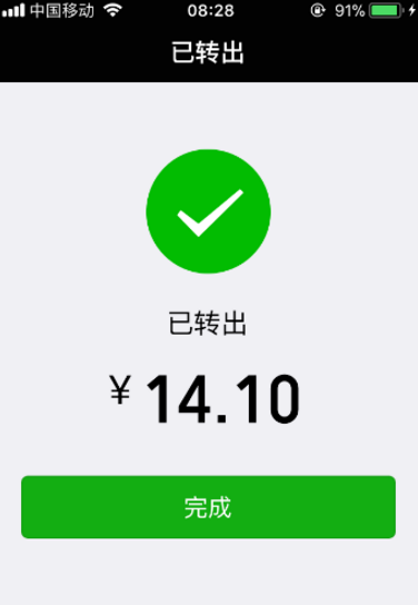 只要支付密码输入无误,这样零钱通里面的钱就能被成功转账出来,如下图所示。