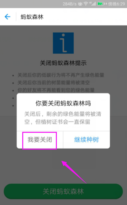 7、最后点击“我要关闭”按钮,这样就关闭了蚂蚁森林,如图。