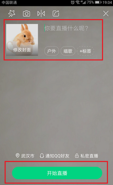3、进去直播准备界面,设置直播的封面和标签,标签比较重要,会作为表识推荐给别人,设置好之后,点击开始直播,如下图所示: