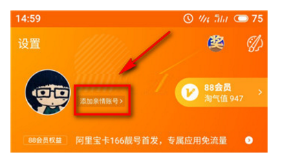 没有的话,可以看到淘宝昵称下有一个添加亲情帐号,点击进入,