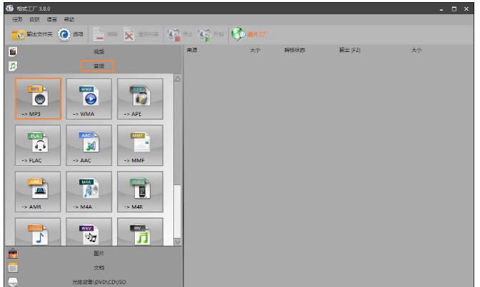1、打开格式工厂,然后单击左侧的“音频→MP3”;