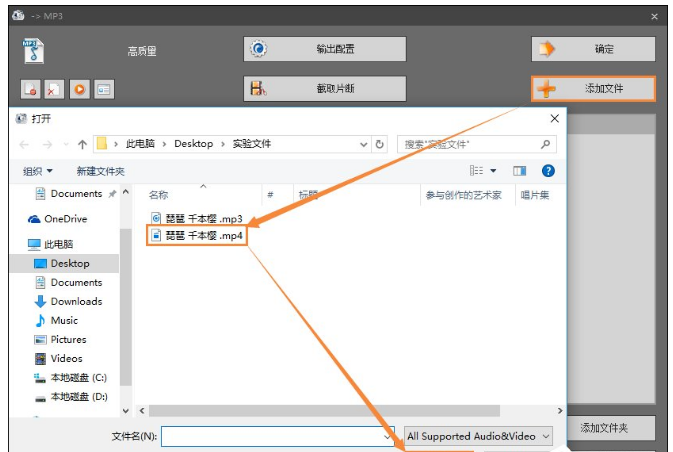 3、单击“添加文件”,找到并双击要转换的MP4文件;
