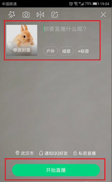 3、进去直播的准备界面,设置直播的封面和标签,标签比较重要,会作为表识推荐给别人,设置好之后,点击开始直播,如下图所示: