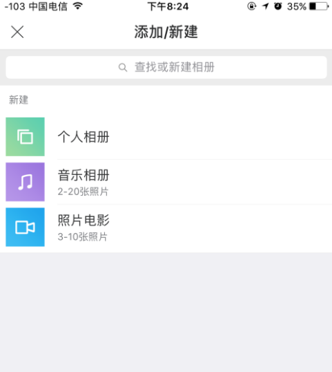 在首页选择自己想要制作电影、音乐相册的照片,选择“新建”。