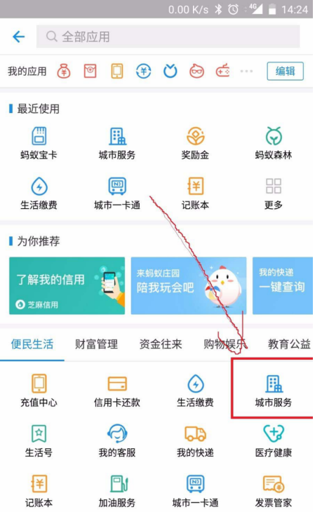 2、在更多中可以查看支付宝的城市服务业务,