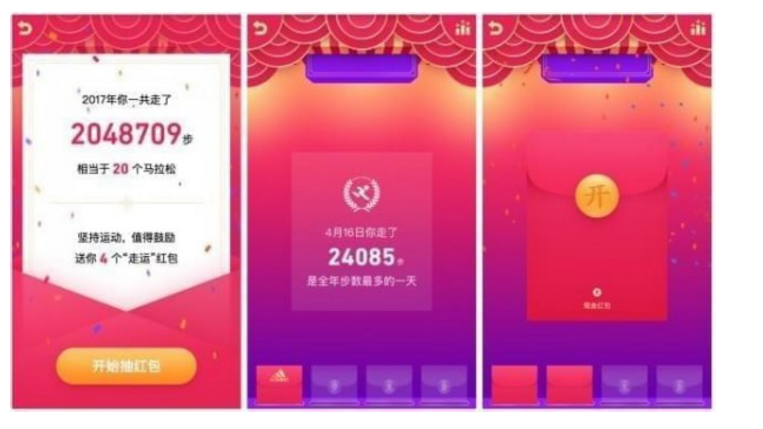 第一是在除夕(2月15日)当天晚上19:00整,手机QQ界面会出现一个挂件,用户可以点击挂件查看去年的运动步数总结,同时也可以抢红包,一直持续到23:00结束。