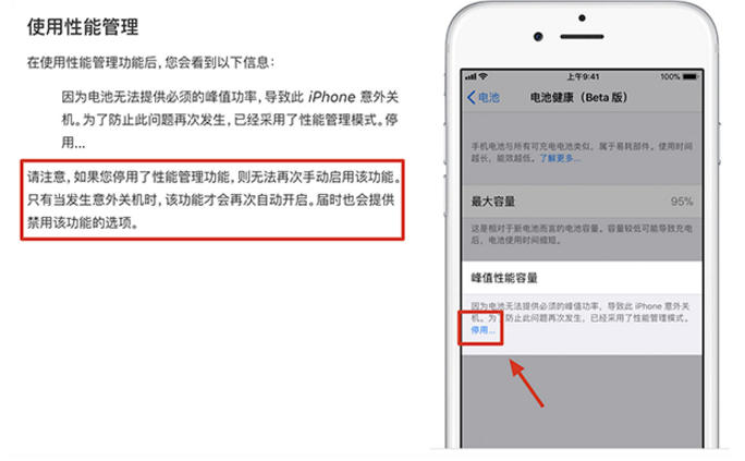根据苹果官网的介绍:用户可以查看性能管理功能(用于动态管理最大性能以防止意外关机)是否开启,而且可以选择关闭该功能。只有当某台设备的电池提供最大瞬时电源的能力出现衰退,且设备发生第一次意外关机后,这个功能才会被启用。这个功能适用于 iPhone 6、iPhone 6 Plus、iPhone 6s、iPhone 6s Plus、iPhone SE、iPhone 7 和 iPhone 7 Plus。