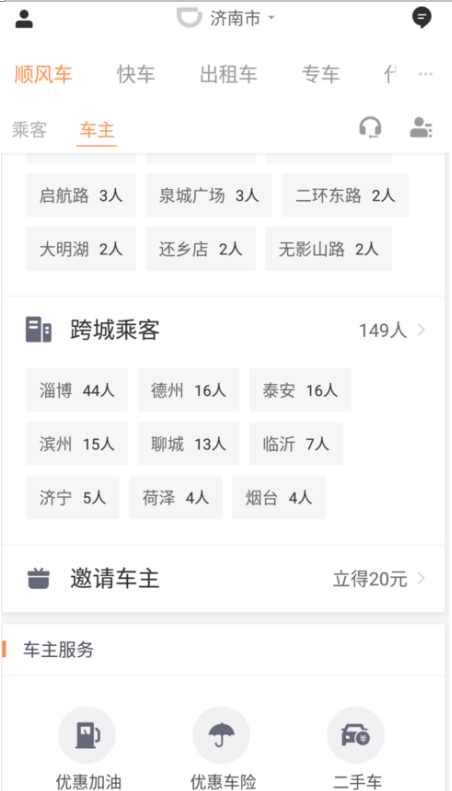 1、以滴滴出行顺风车为例,顺风车内置app有加油优惠,比我们自己直接去加油站加油要便宜很多。