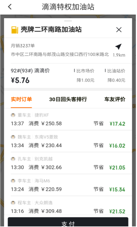 3、在加油优惠界面,你可以查看附近区域与顺风车合作的加油站,一般合作的加油站油品质量都不错。