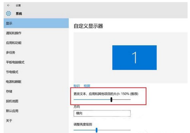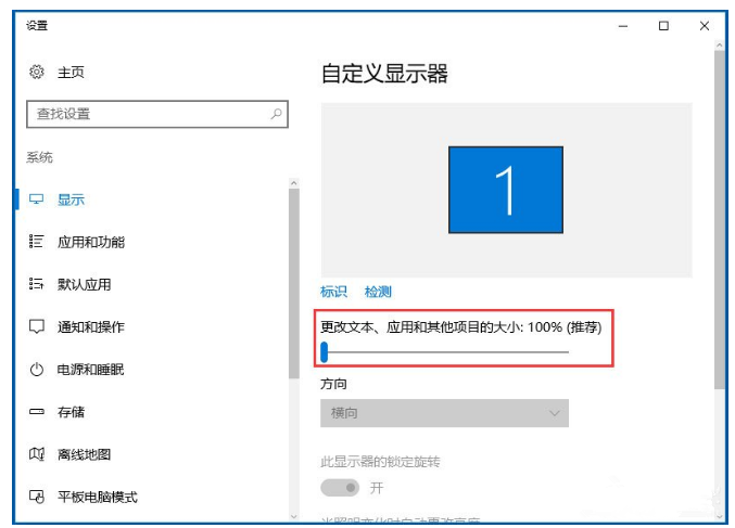 2、将“将更改文本、应用和其他项目的大小”由推荐的150%修改为100%;