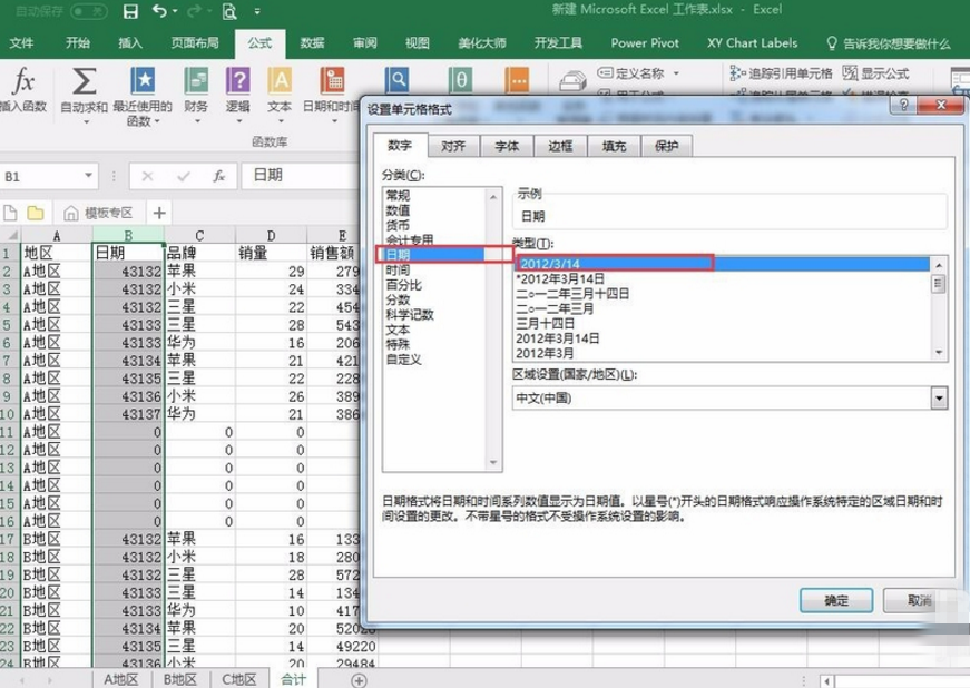 7、将B列修改为日期格式并点击确定,可以看到其余工作表的数据已经被完美的倒入合计工作表中。