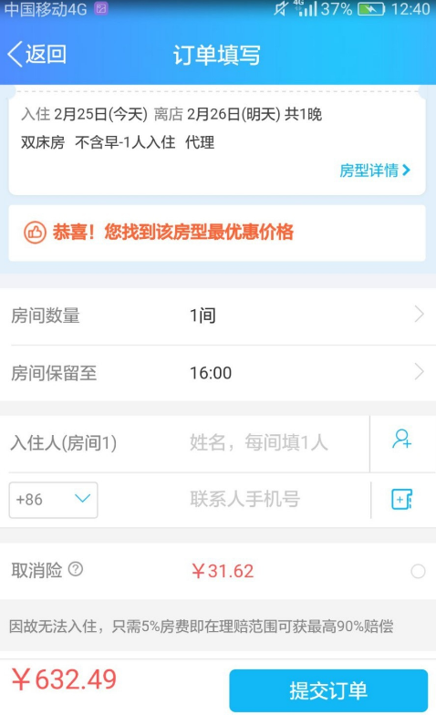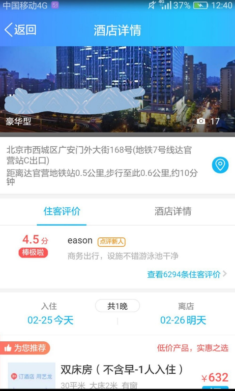 5、确认酒店之后,选择好房型提交,支付相关费用就可以入住酒店了。