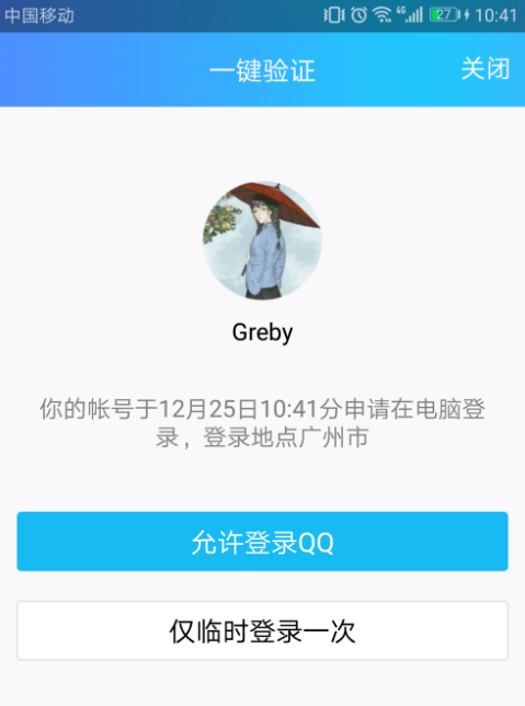 5、开启后,只要没有记录的ip都需要你的手机验证设备才可以登录QQ。