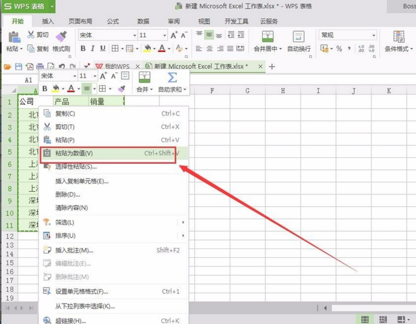 5、由于此时数据区域带有公式,因此我们需要将数据区域复制并粘贴为数值形式,防止之后操作结果错误。