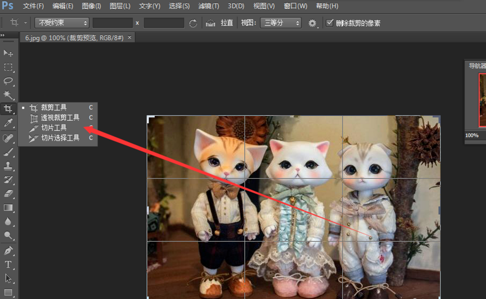 3、找到右边工具栏,里面有切片工具,如下图位置,