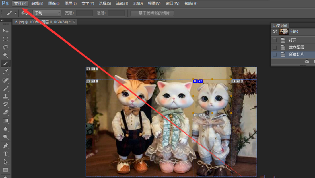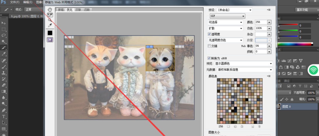 6、做好切片的图片,然后储存,打开上面文件,选择储存为web所用格式。