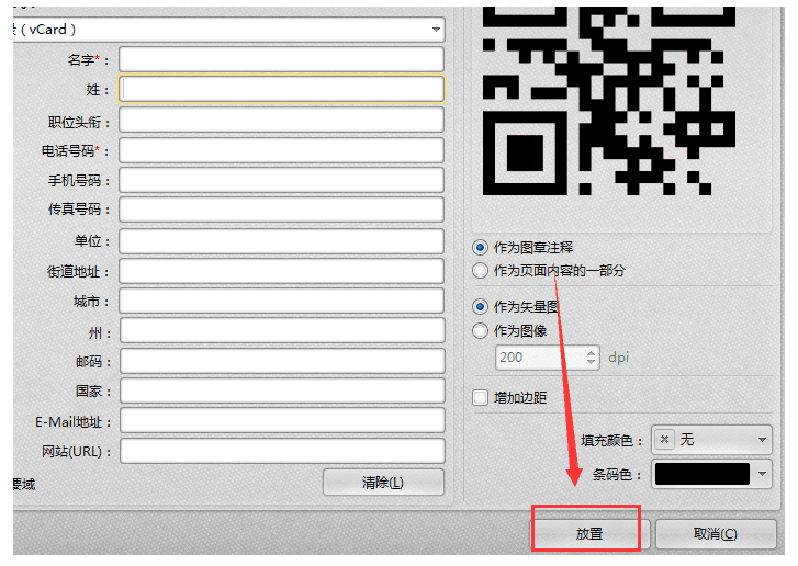 5、最后点击“放置”按钮,即可完成添加条形码操作。