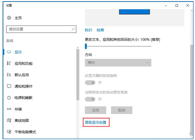 2、点击显示设置最底部的“高级显示设置”;